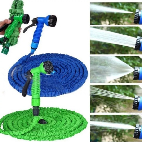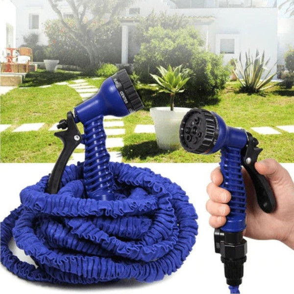 Esta increíble manguera de agua expansible le da un amplio diámetro y potente pulverizador de alto flujo. No más luchas con mangueras pesadas.