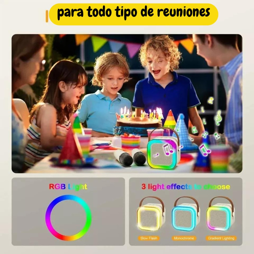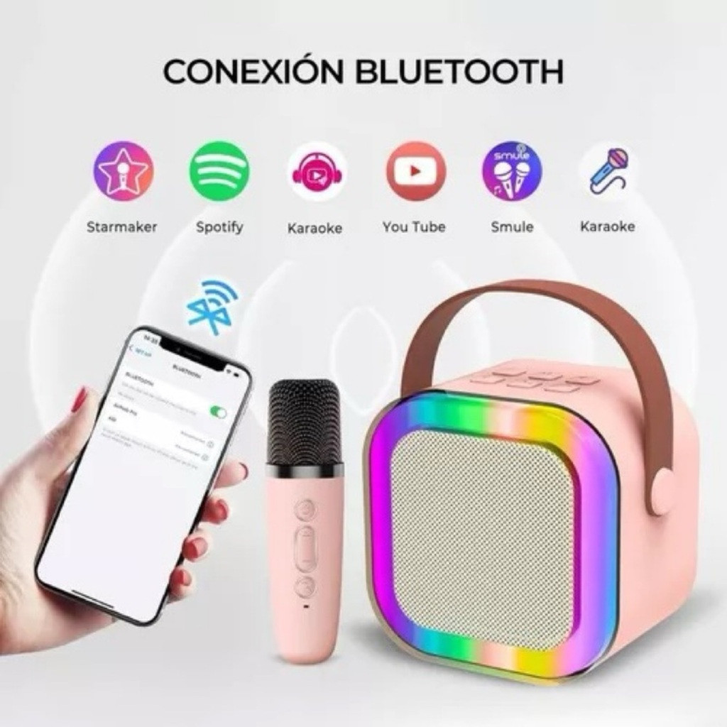 Descubrí la revolución del karaoke con este pack modelo K12. Con luces RGB, micrófono inalámbrico y portabilidad única, lleva la fiesta a donde quieras. Experimenta la libertad del entretenimiento con conectividad sin cables y un micrófono de alta calidad.