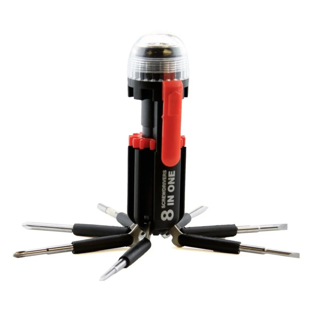 El destornillador 8 en 1 con linterna es un kit de herramientas todo en uno.